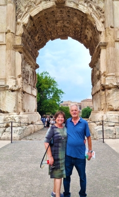 We visited the Triumphal Arch of Titus facing the Colosseum, built by his brother Domitian to commemorate Titus' campaign in the Jewish War (70-71 CE). We searched for the famed Jewish Menorah and were disappointed to discover that it is very small and insignificant compared to the impressive arch.