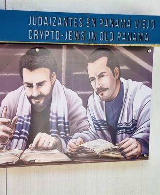 We also visited the ruins of the first settlements established by the conquistadores on the isthmus of Panama dating back to 1519. It was the first European settlement on the Pacific Ocean. There you can find an archeological site and a historical museum. The museum also has some displays of Jewish interest. One display shows Crypto Jews and other Jews being interrogated by the Inquisition. Their attire was indicative of their sentence. Crypto Jews were sometimes called Portuguese or conversos.